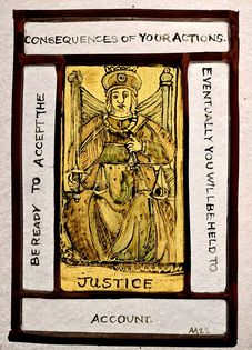 Making Political Statements In Glass Amy McCarthyJun 8, 20221 min readThis piece combines tarot card imagery and meanings with a bit of political satire. For a local defense lawyer.